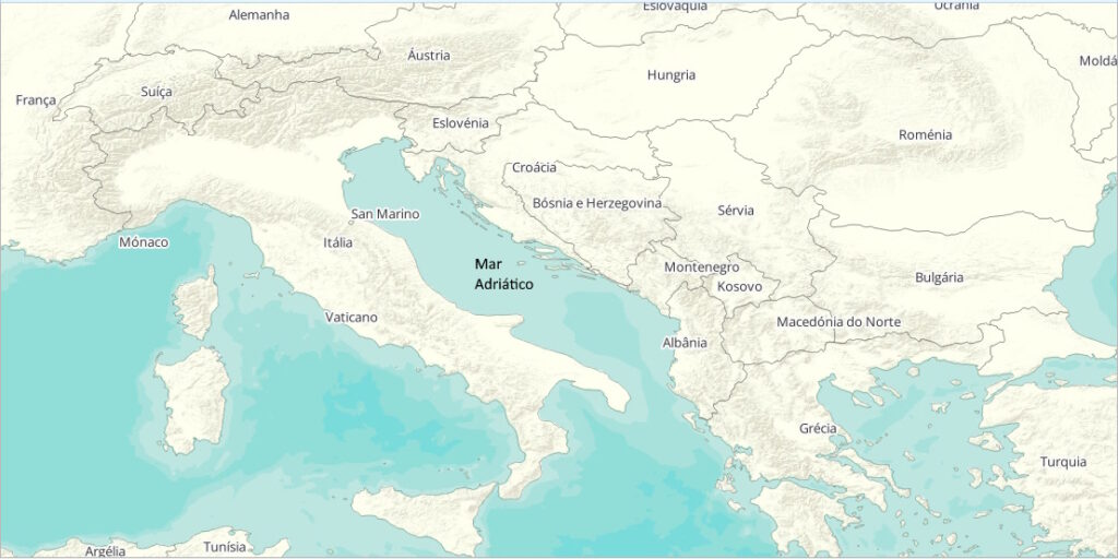 Mar interno, conectado com o Mar Mediterrâneo, banhando a costa leste da Itália e a Península dos Balcãs (Eslovênia, Croácia, Bósnia Herzegovina, Montenegro e Albânia). Área de 131.050 km². Deixe o seu Comentário
