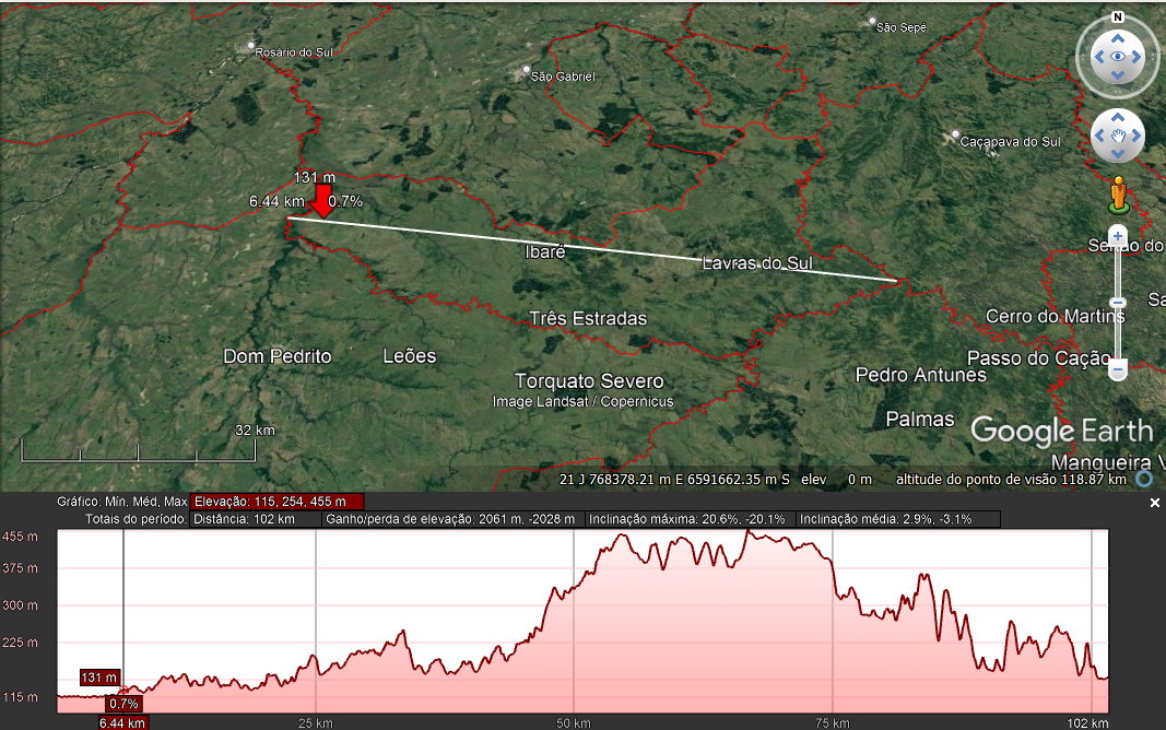 - Entrada de Lavras do Sul – Av. Nove de Maio: 340 m