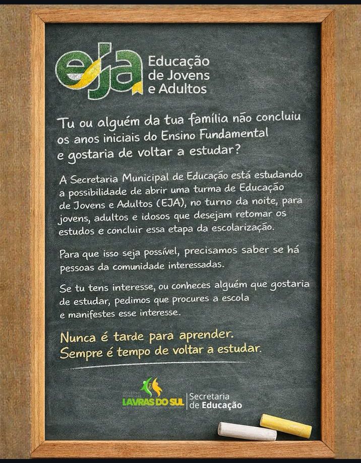 Confira o recado da Secretaria Municipal de Educação de Lavras do Sul.
